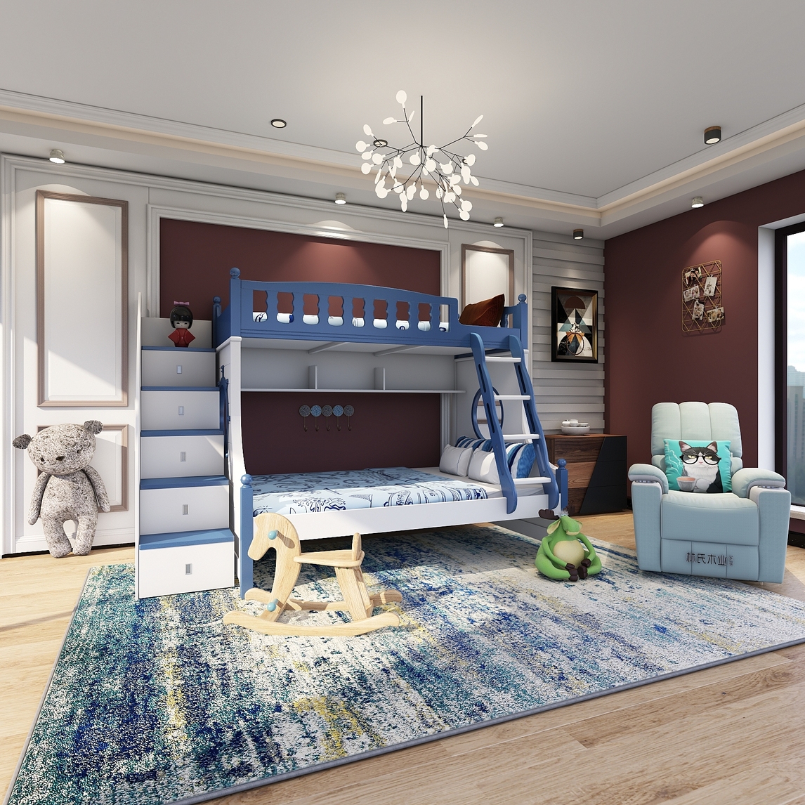 小户型儿童房双层床高低床 玩出生活多种可能,打破小户型的极限,演绎多种玩法 颠覆对小户型的认知,休息玩乐亲子均不误 从小培养宝贝们亲情,缤纷色彩更温馨