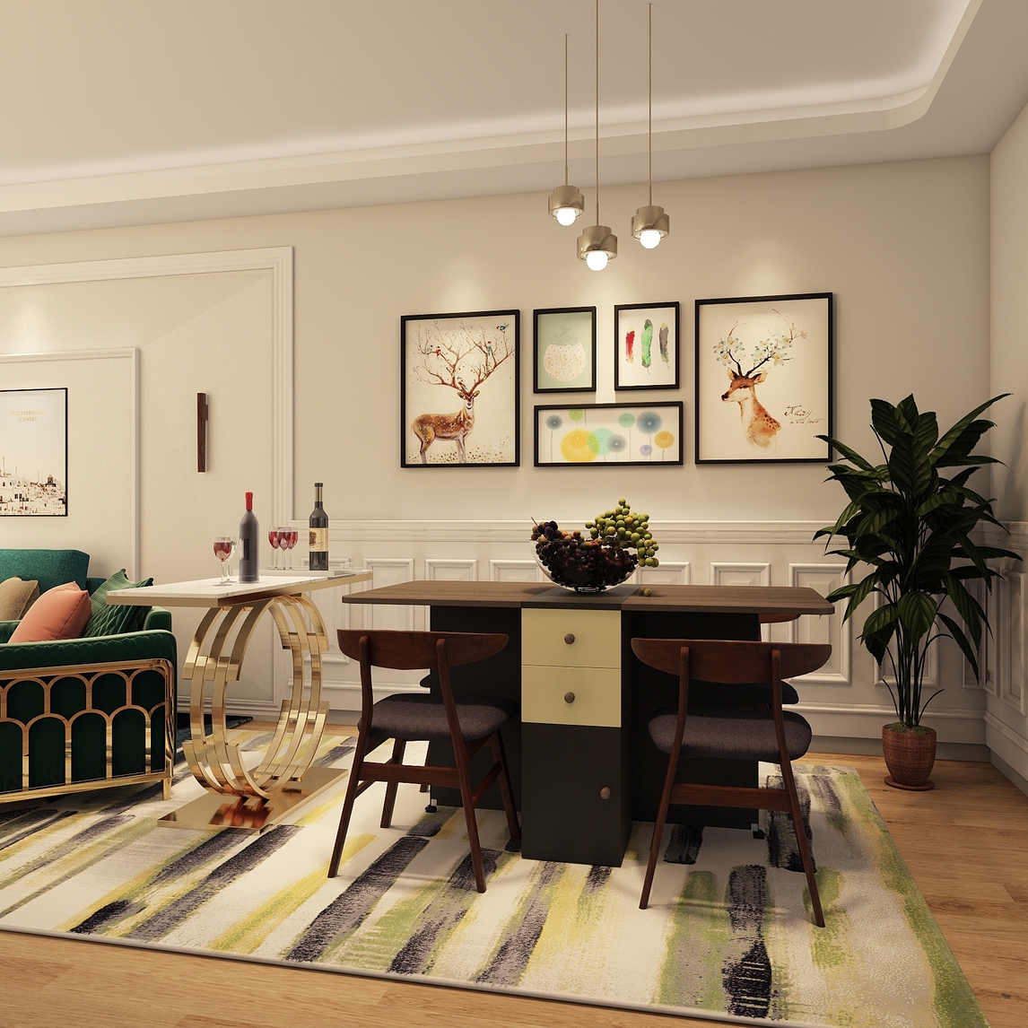 好看的欧式餐边柜只是一个小小的点缀而已,重要的是可伸缩的餐桌,他让你的空间感爆棚,让你合理利用空间,深深地爱上他