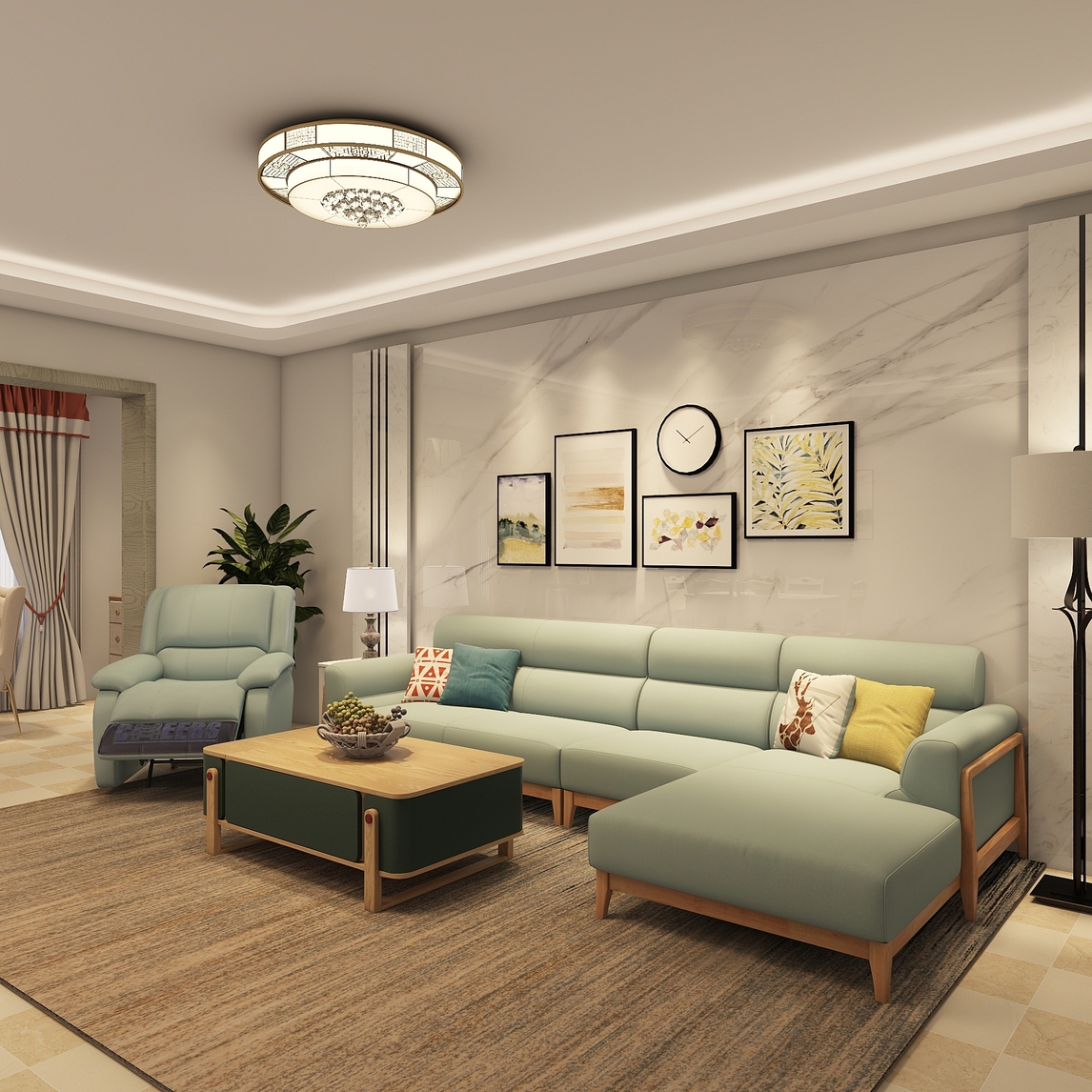时尚的客厅搭配上时尚的颜色,让整个房间充满年轻有活力的气息,好看的装饰画搭配上精致的茶几,房间更有韵味