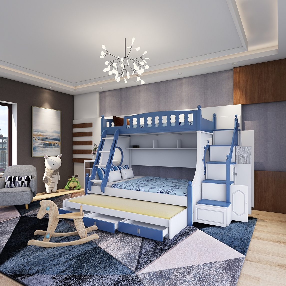小户型儿童房双层床高低床 玩出生活多种可能,打破小户型的极限,演绎多种玩法 颠覆对小户型的认知,休息玩乐亲子均不误 从小培养宝贝们亲情,缤纷色彩更温馨