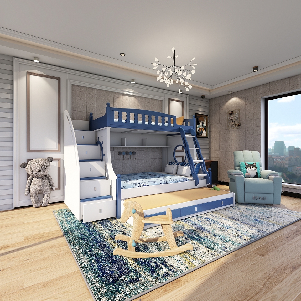 小户型儿童房双层床高低床 玩出生活多种可能,打破小户型的极限,演绎多种玩法 颠覆对小户型的认知,休息玩乐亲子均不误 从小培养宝贝们亲情,缤纷色彩更温馨