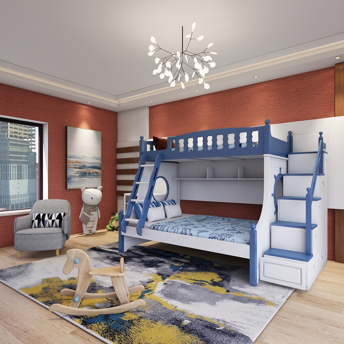 小户型儿童房双层床高低床 玩出生活多种可能,打破小户型的极限,演绎多种玩法 颠覆对小户型的认知,休息玩乐亲子均不误 从小培养宝贝们亲情,缤纷色彩更温馨