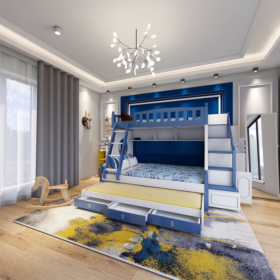 小户型儿童房双层床高低床 玩出生活多种可能,打破小户型的极限,演绎多种玩法 颠覆对小户型的认知,休息玩乐亲子均不误 从小培养宝贝们亲情,缤纷色彩更温馨