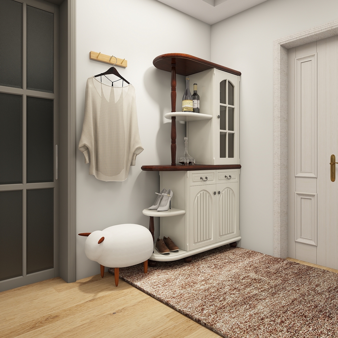 地中海风格的酒柜以及换鞋柜,让你充分的利用空间,一点也不耽误,搭配上好看可爱的换鞋凳和柔软的地毯,让房间变得干净自然