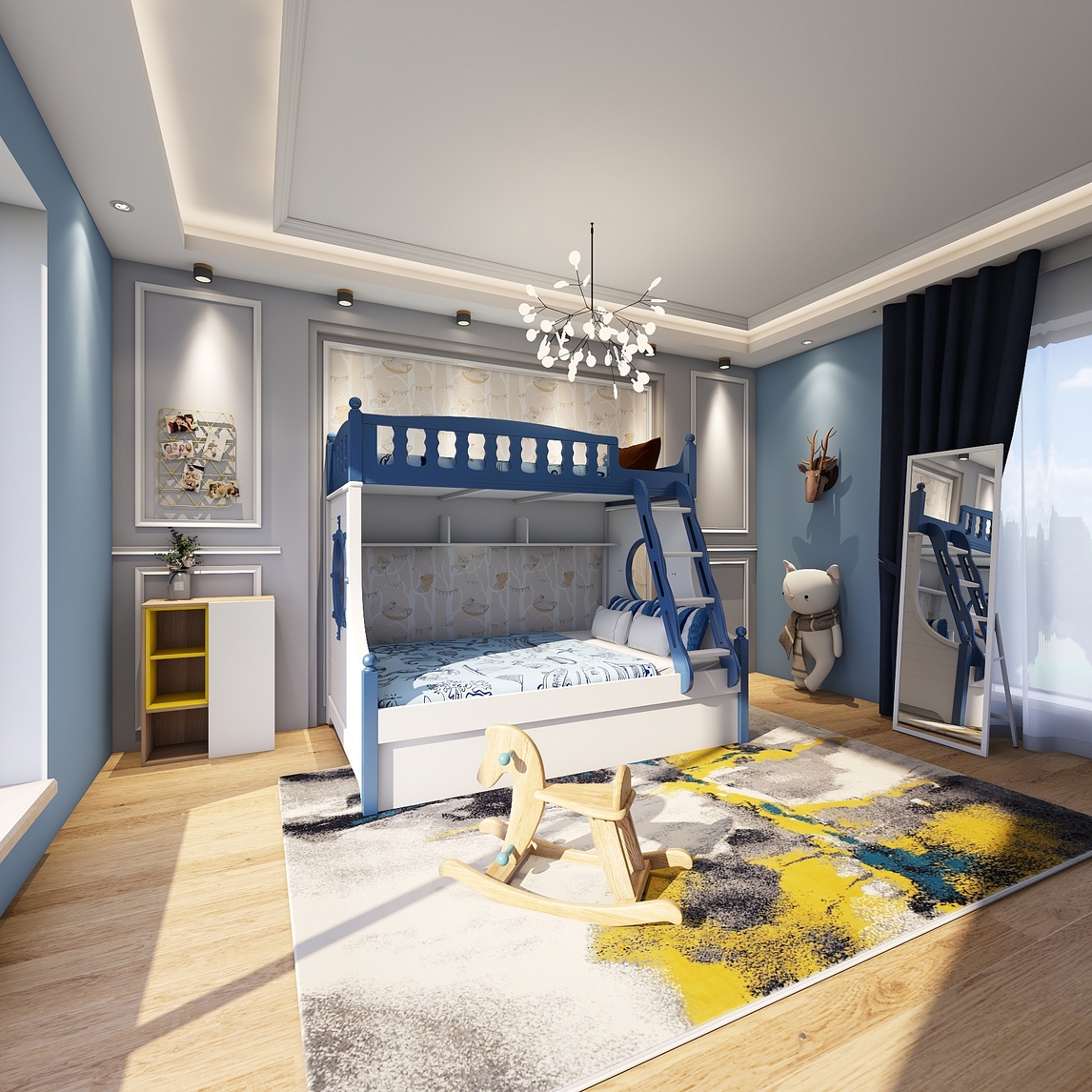 小户型儿童房双层床高低床 玩出生活多种可能,打破小户型的极限,演绎多种玩法 颠覆对小户型的认知,休息玩乐亲子均不误 从小培养宝贝们亲情,缤纷色彩更温馨