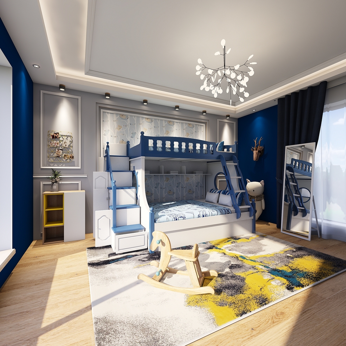 小户型儿童房双层床高低床 玩出生活多种可能,打破小户型的极限,演绎多种玩法 颠覆对小户型的认知,休息玩乐亲子均不误 从小培养宝贝们亲情,缤纷色彩更温馨