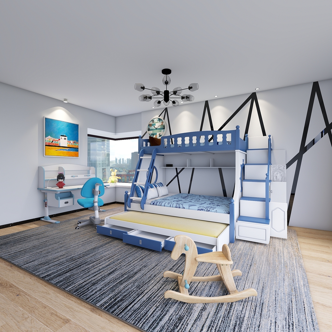 小户型儿童房双层床高低床 玩出生活多种可能,打破小户型的极限,演绎多种玩法 颠覆对小户型的认知,休息玩乐亲子均不误 从小培养宝贝们亲情,缤纷色彩更温馨