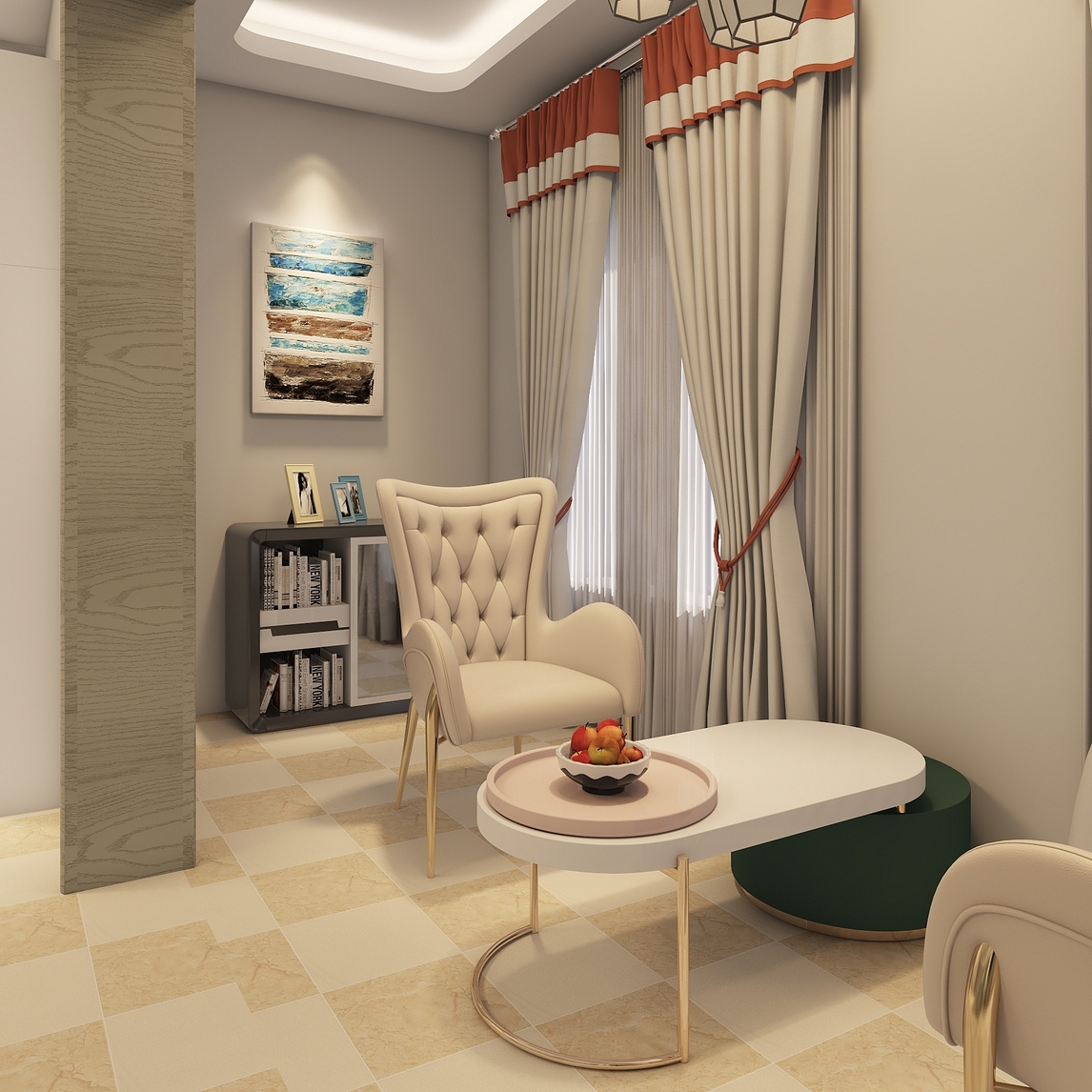 在卧室里,你可一个出这么一块地方,放上沙发,放上茶几,放上自己喜欢的国画,在这个小小的地方,属于你的地方,深深地爱上这里