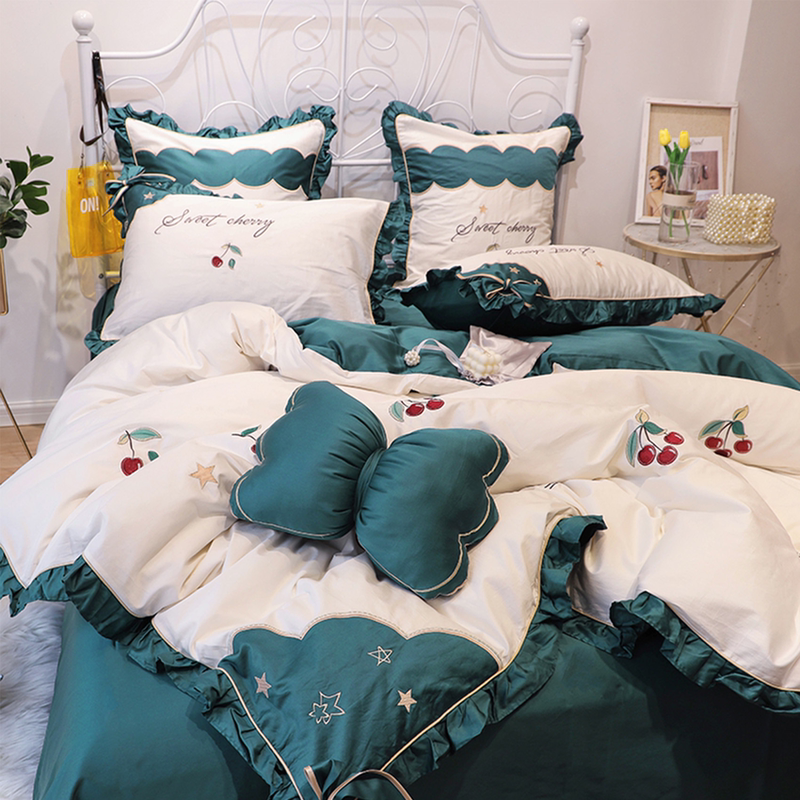 精致可爱的小樱桃,代表着甜蜜的爱情。白色和墨绿色的色彩搭配,让人眼前一亮。可爱的蝴蝶结,韩式荷叶花边,每个细节都透露着精致。