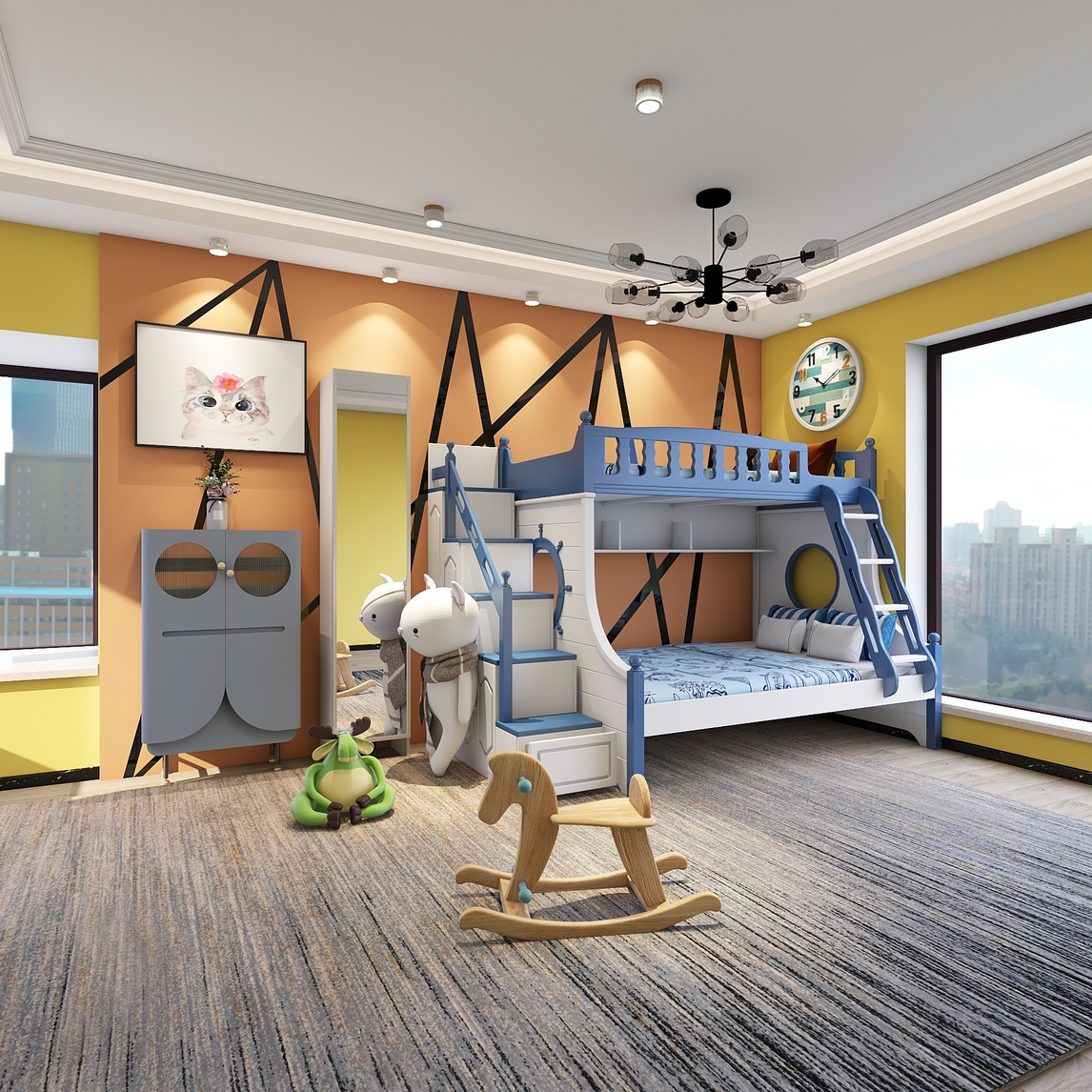 小户型儿童房双层床高低床 玩出生活多种可能,打破小户型的极限,演绎多种玩法 颠覆对小户型的认知,休息玩乐亲子均不误 从小培养宝贝们亲情,缤纷色彩更温馨