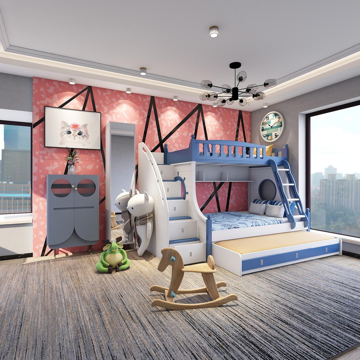 小户型儿童房双层床高低床 玩出生活多种可能,打破小户型的极限,演绎多种玩法 颠覆对小户型的认知,休息玩乐亲子均不误 从小培养宝贝们亲情,缤纷色彩更温馨