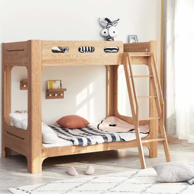 简约的上下床,显得小巧可爱,斜体设计,攀爬更加方便。自然的原木色搭配白色的窗帘白纱,还有菱形格子地毯,一派温馨的景象。