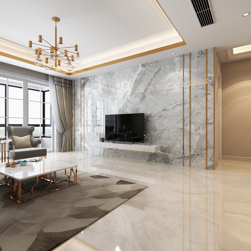 一个现代轻奢风的客厅,当然不能只是表面奢华,每一种装饰都要能体现出轻奢的特点。在客厅里,金色系的茶几、全铜的吊灯、大气的瓷砖背景墙等软硬装,都要体现出一种低调的奢华气质哦。