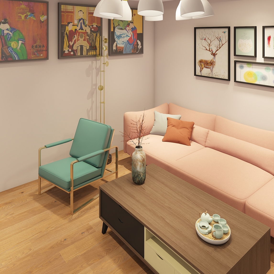 亲朋好友相聚,环境很重要,定制窗帘、现代插花瓶的时尚;折叠椅的舒适,日式茶几的简约,欧式电视柜和衣帽架很实用,墙面采用立邦金装乳胶漆,无胶水配方,无甲醛困扰~