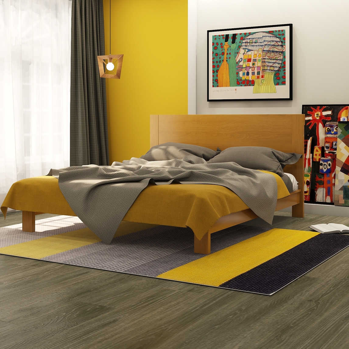 这个房间整体的色调是黄色和灰色,鲜艳的黄色和沉着的灰色形成了一个色彩的碰撞,碰撞出了火花,让你眼前一亮对生活充满干劲。