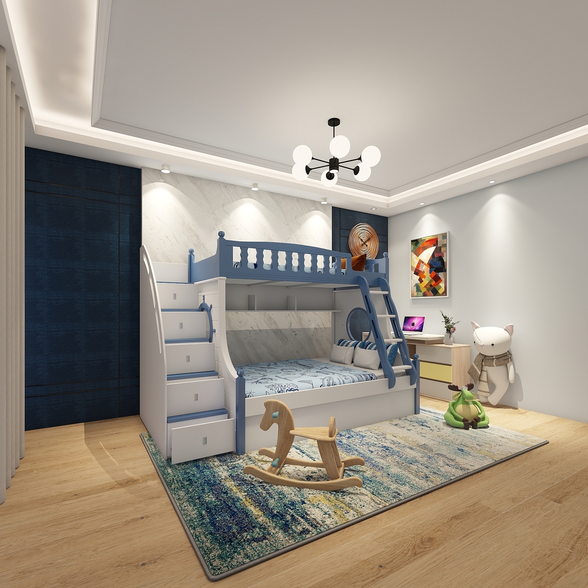 小户型儿童房双层床高低床 玩出生活多种可能,打破小户型的极限,演绎多种玩法 颠覆对小户型的认知,休息玩乐亲子均不误 从小培养宝贝们亲情,缤纷色彩更温馨