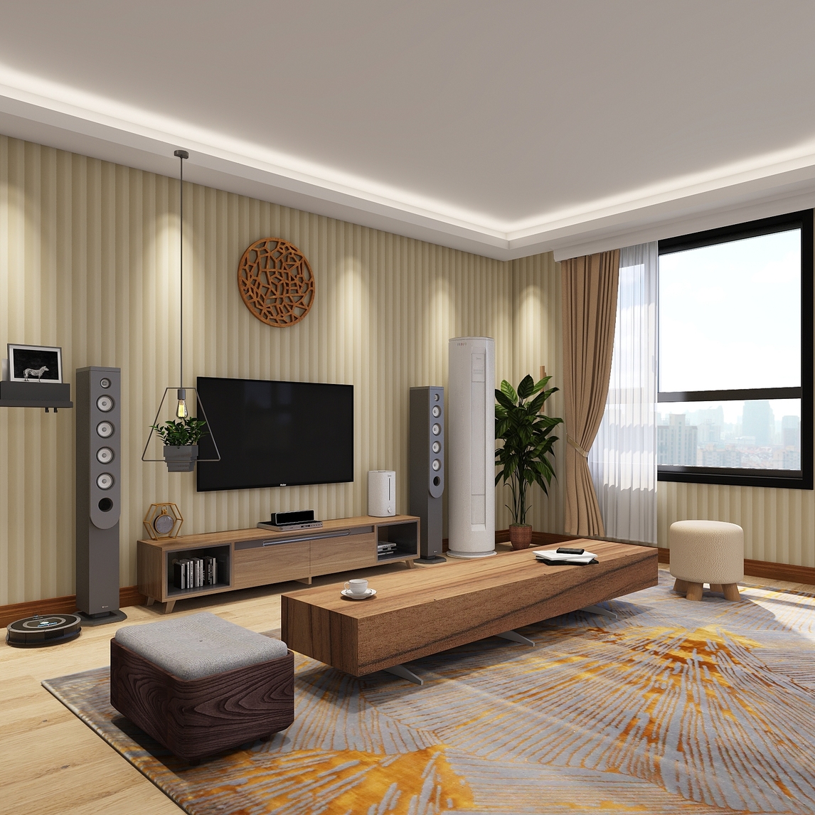 方硬的主调使空间非常简洁并且现代感十足。实木的桌椅又柔化了方硬感,并且更加亲近自然。米白的壁纸更增添了空间的舒适度。绝对是年轻人的不二选择。