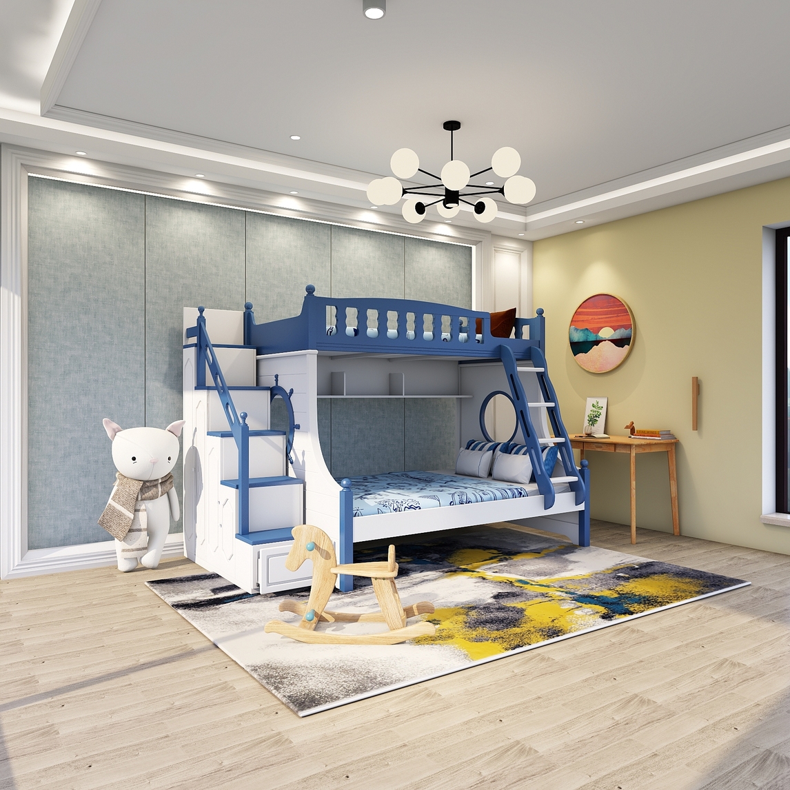 小户型儿童房双层床高低床 玩出生活多种可能,打破小户型的极限,演绎多种玩法 颠覆对小户型的认知,休息玩乐亲子均不误 从小培养宝贝们亲情,缤纷色彩更温馨