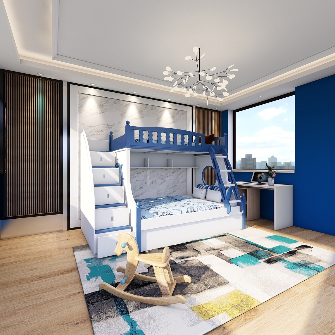 小户型儿童房双层床高低床 玩出生活多种可能,打破小户型的极限,演绎多种玩法 颠覆对小户型的认知,休息玩乐亲子均不误 从小培养宝贝们亲情,缤纷色彩更温馨