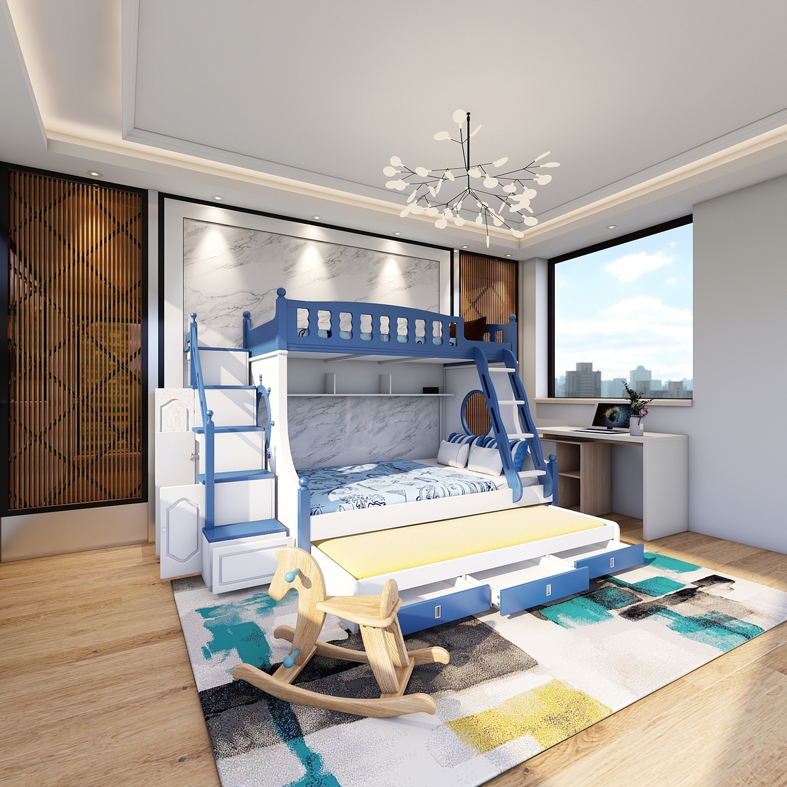 小户型儿童房双层床高低床 玩出生活多种可能,打破小户型的极限,演绎多种玩法 颠覆对小户型的认知,休息玩乐亲子均不误 从小培养宝贝们亲情,缤纷色彩更温馨