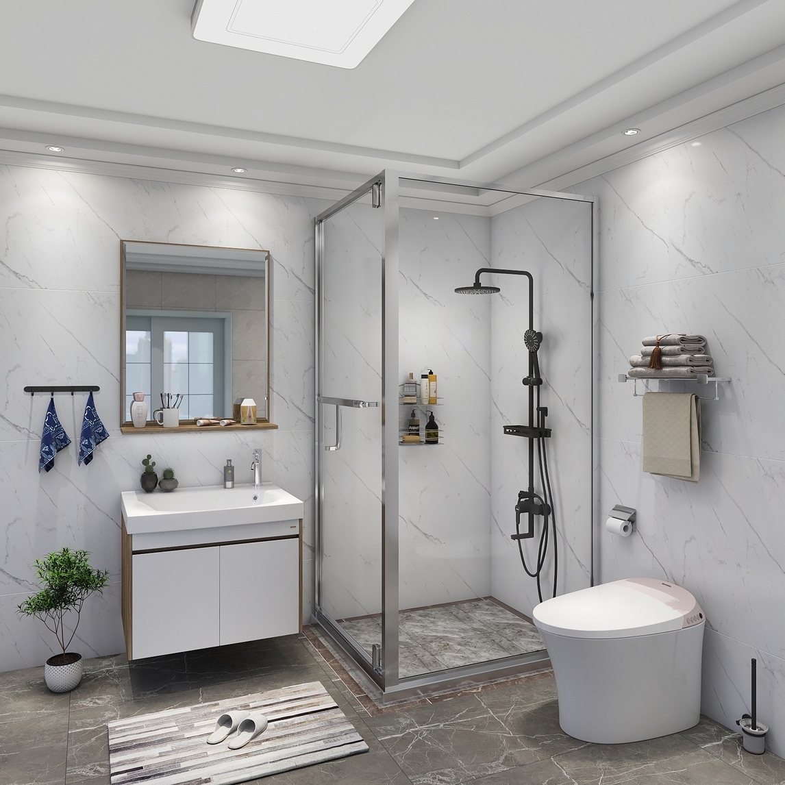 卫浴间空间大,布局合理,卫浴功能细化,干湿分区,光线充足,通风透气,不易发霉,卫浴间带点绿色植物点缀,