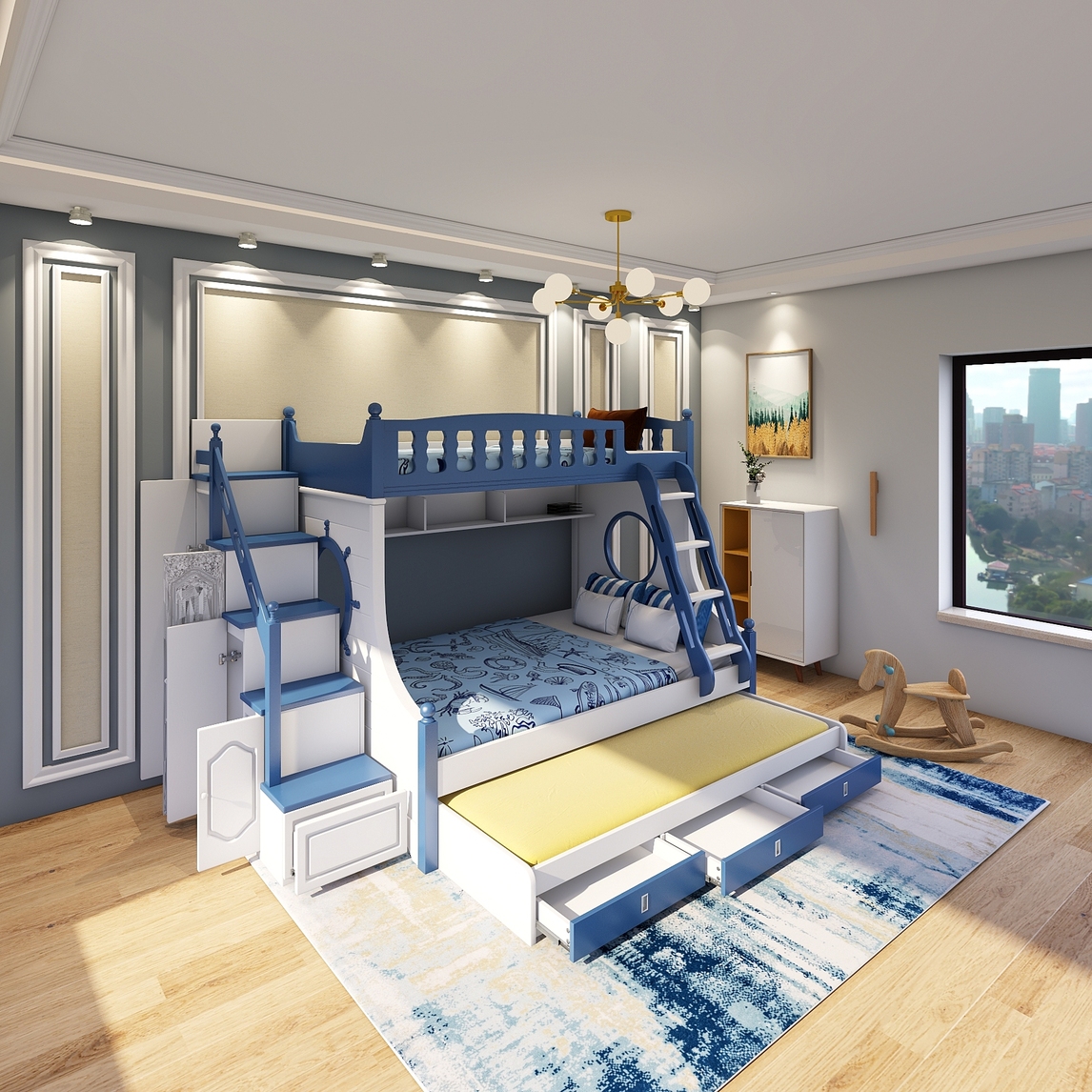 小户型儿童房双层床高低床 玩出生活多种可能,打破小户型的极限,演绎多种玩法 颠覆对小户型的认知,休息玩乐亲子均不误 从小培养宝贝们亲情,缤纷色彩更温馨