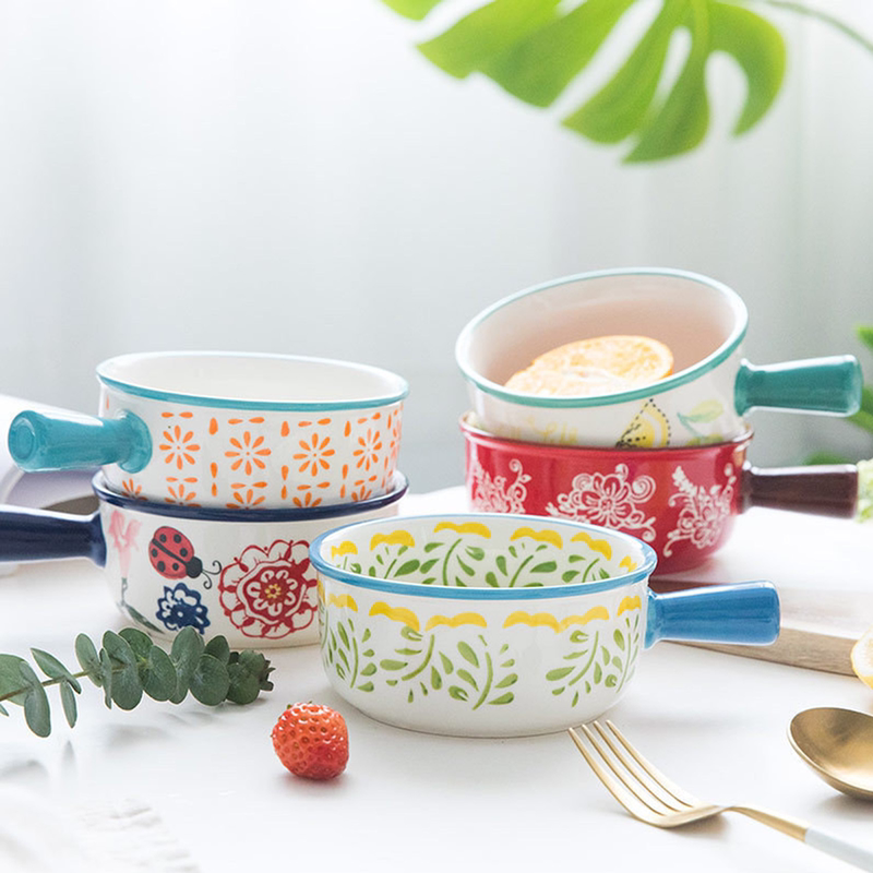 缤纷色彩点缀的手柄碗,清新可人,每一款都好喜欢。用它盛放甜品、沙拉、辅食都不错,还能作为早餐碗,让一天的心情更甜蜜。