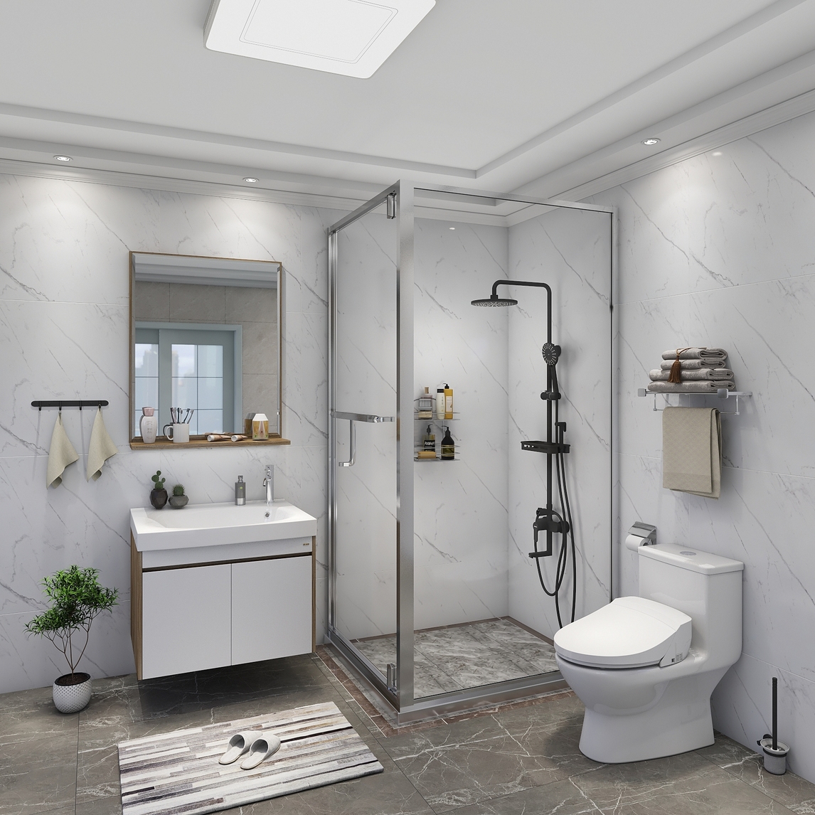 卫浴间空间大,布局合理,卫浴功能细化,干湿分区,光线充足,通风透气,不易发霉,卫浴间带点绿色植物点缀