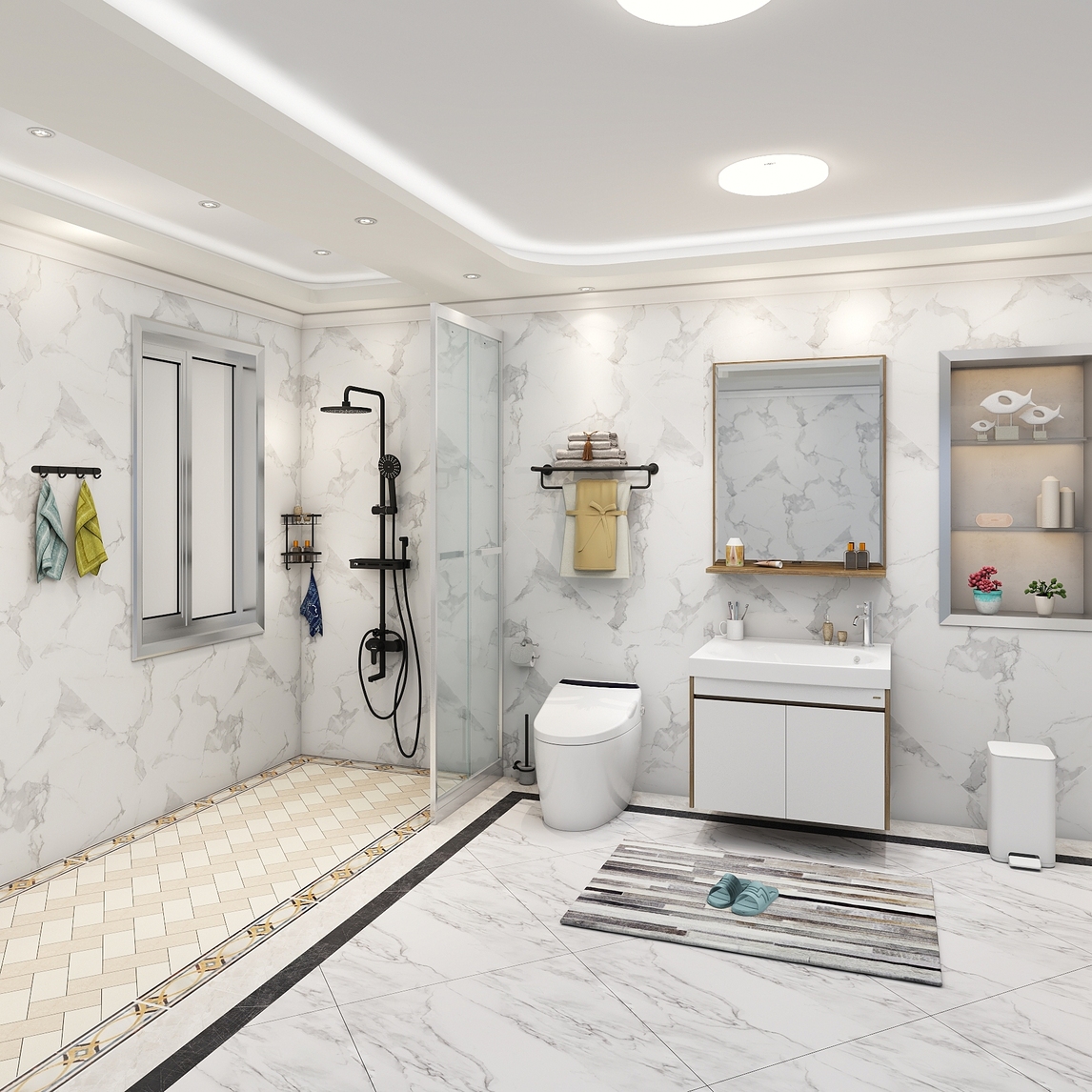 卫生间干湿分区,而且空间大,布局合理,灯光充足,通风透气,美观得体,设备完善,墙壁留有摆放小饰物的位置。