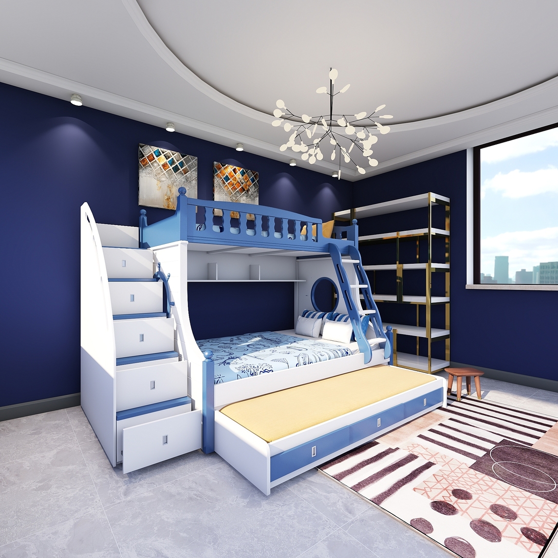 小户型儿童房双层床高低床 玩出生活多种可能,打破小户型的极限,演绎多种玩法 颠覆对小户型的认知,休息玩乐亲子均不误 从小培养宝贝们亲情,缤纷色彩更温馨