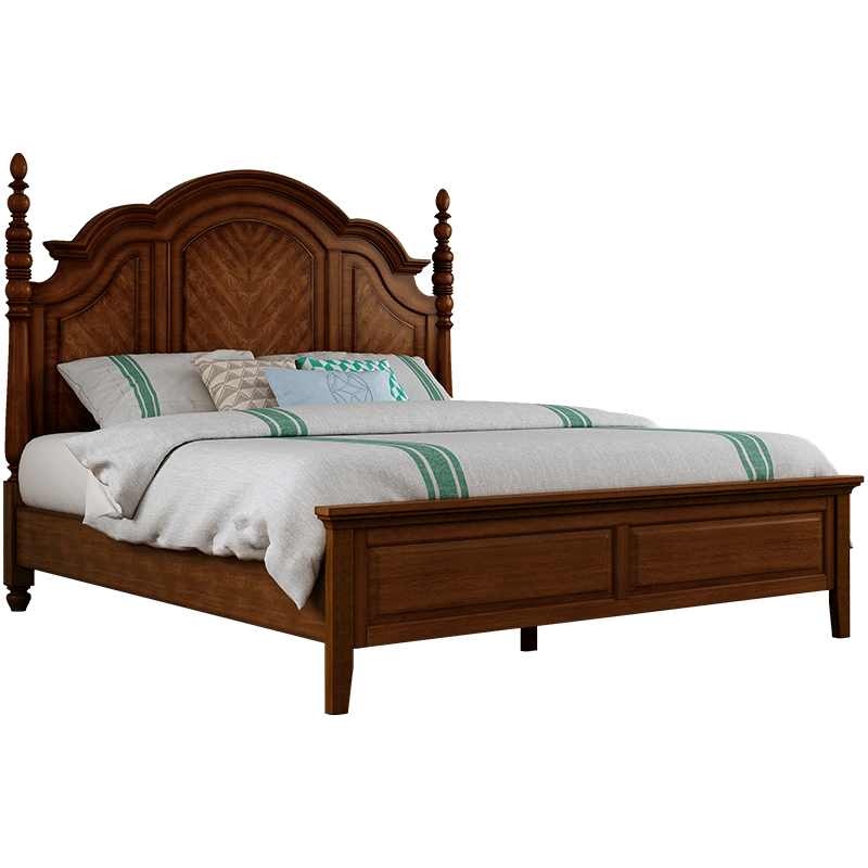 床头与床尾的造型照相呼应,圆润流畅的弧线设计,富有灵动的美感,古典的雕花精美华丽,点缀其中尽显高贵的气质,带你感受艺术品质生活。床柱的造型华丽,雕刻精美而圆润,复古又大气。做旧的擦色处理,色泽深浅得当...展开