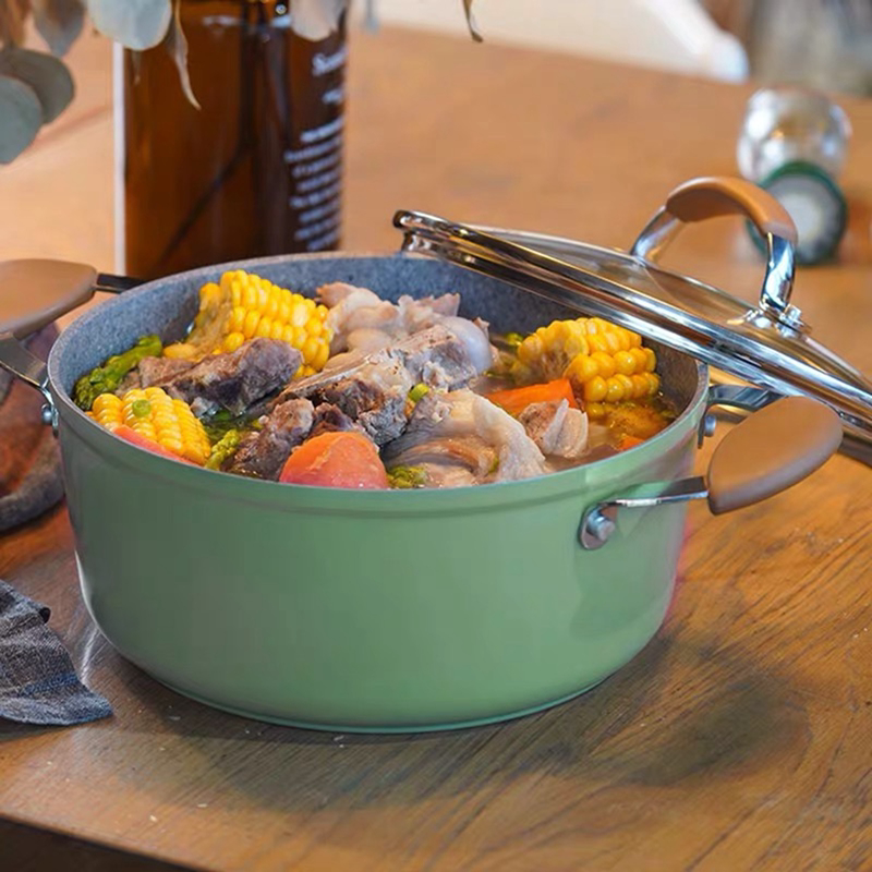 独具匠心的工艺搭配上亮丽的色彩,让你享受整个烹饪的乐趣,这款锅具,还有着防摔和耐高温的作用,更加经久耐用,搭配上内循环的设计,可以让整个锅都均匀受热,长久控温。