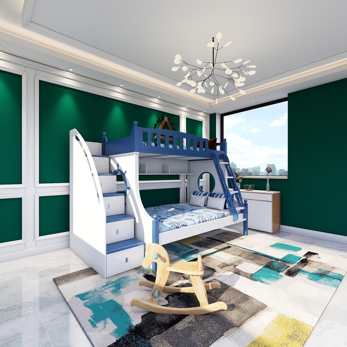 小户型儿童房双层床高低床 玩出生活多种可能,打破小户型的极限,演绎多种玩法 颠覆对小户型的认知,休息玩乐亲子均不误 从小培养宝贝们亲情,缤纷色彩更温馨