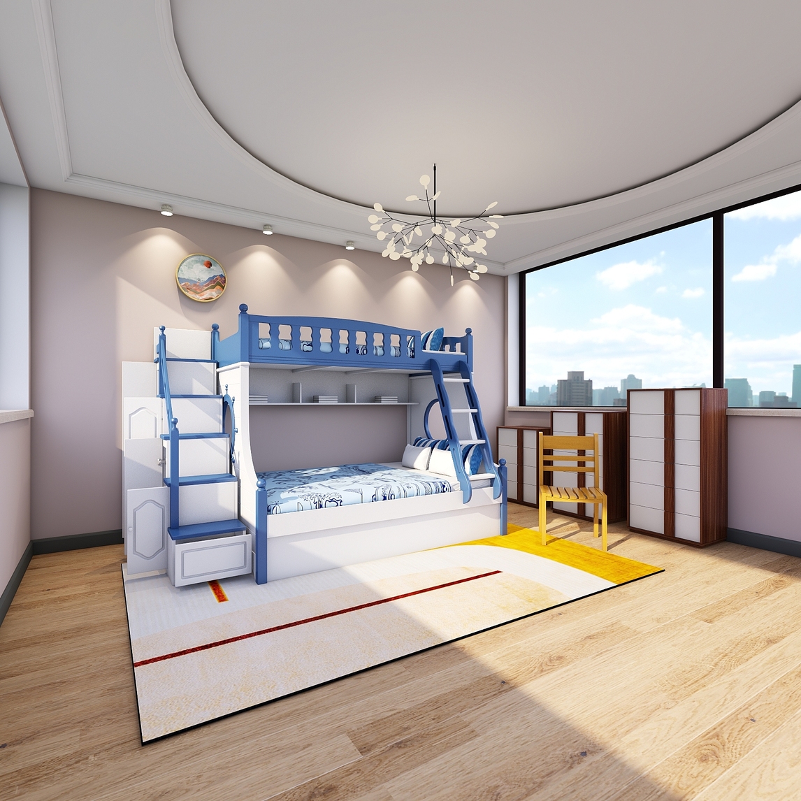 小户型儿童房双层床高低床 玩出生活多种可能,打破小户型的极限,演绎多种玩法 颠覆对小户型的认知,休息玩乐亲子均不误 从小培养宝贝们亲情,缤纷色彩更温馨