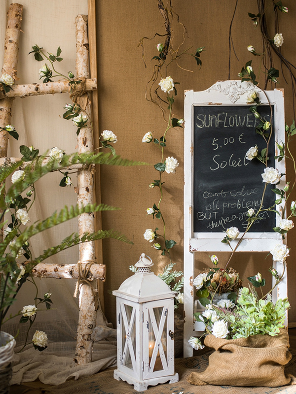 喜欢用玫瑰藤装饰空间,不仅可以攀岩,垂吊,不论怎么装扮,都是质感满分的场景,就像这样,用实用的黑板与其相搭配,再以白桦木作为攀岩载体,整体感觉充满田园风情,朴实自在,又乐在其中,很讨喜。