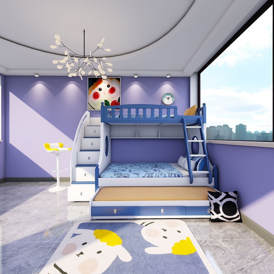 小户型儿童房双层床高低床 玩出生活多种可能,打破小户型的极限,演绎多种玩法 颠覆对小户型的认知,休息玩乐亲子均不误 从小培养宝贝们亲情,缤纷色彩更温馨
