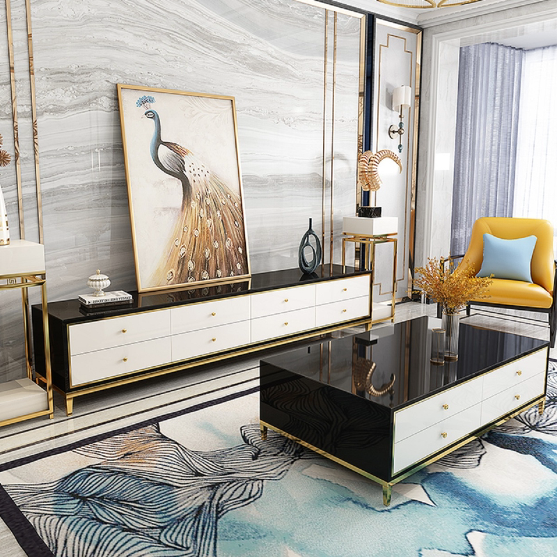 客厅选择轻奢风,整个房间以黑白灰为主色调,再搭配着一些出彩的软装,给人一种简洁而不随意,高级而不浮夸的感觉。