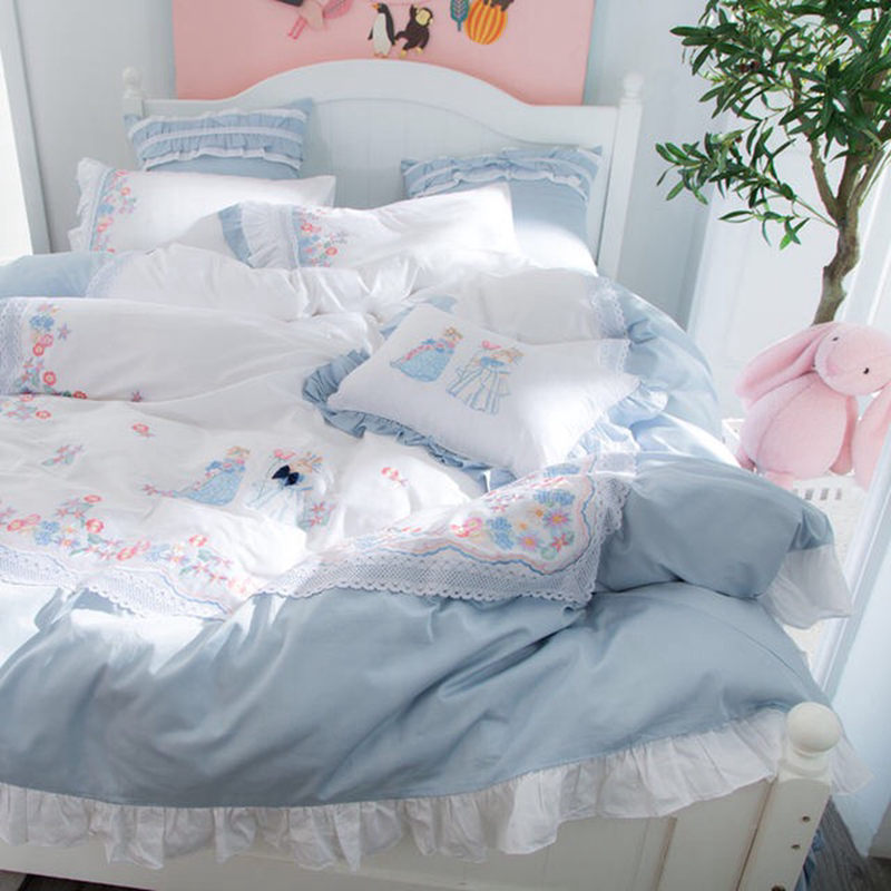 小清新蕾丝荷叶边绣花四件套,唯美蕾丝荷叶边设计,搭配上清新的小碎花图案,营造出仙气十足的公主风卧室。