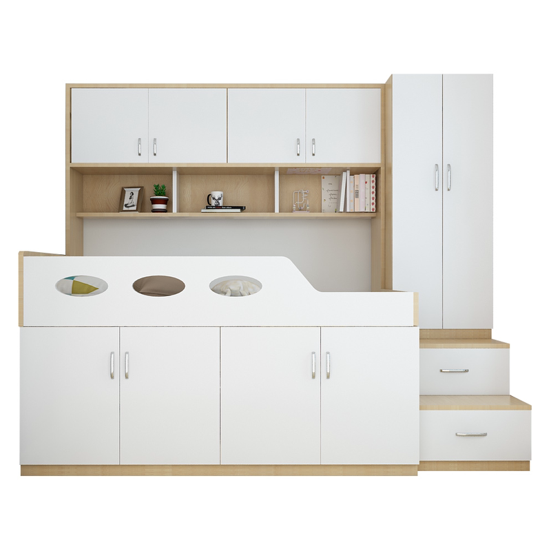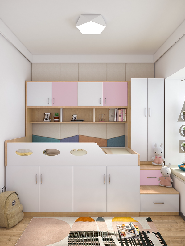 此次设计是专门针对小户型的次卧,儿童衣物比较多,为了满足儿童的休息又能储藏。就把衣橱和床以组合的形式,在满足休息储藏的情况下又能学习,上床增加的吊柜和书架用以满足儿童玩具和书籍的储藏。再配上一个衣柜用...展开