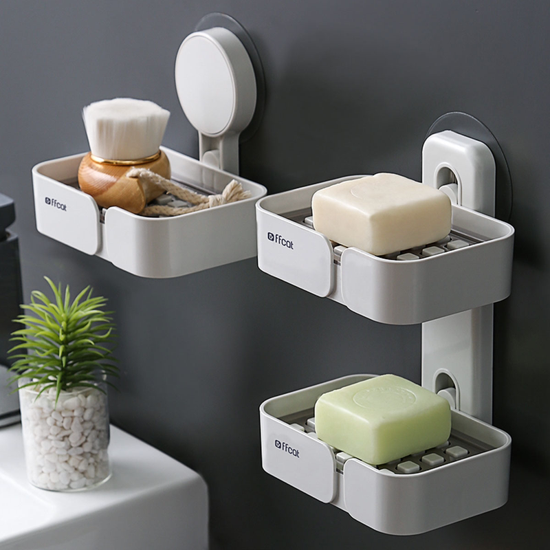 沥水不滴的设计还可以拆卸 使用无痕贴粘贴墙面非常牢固,可免打孔 架子和沥水架可分开既能收纳也能放肥皂
