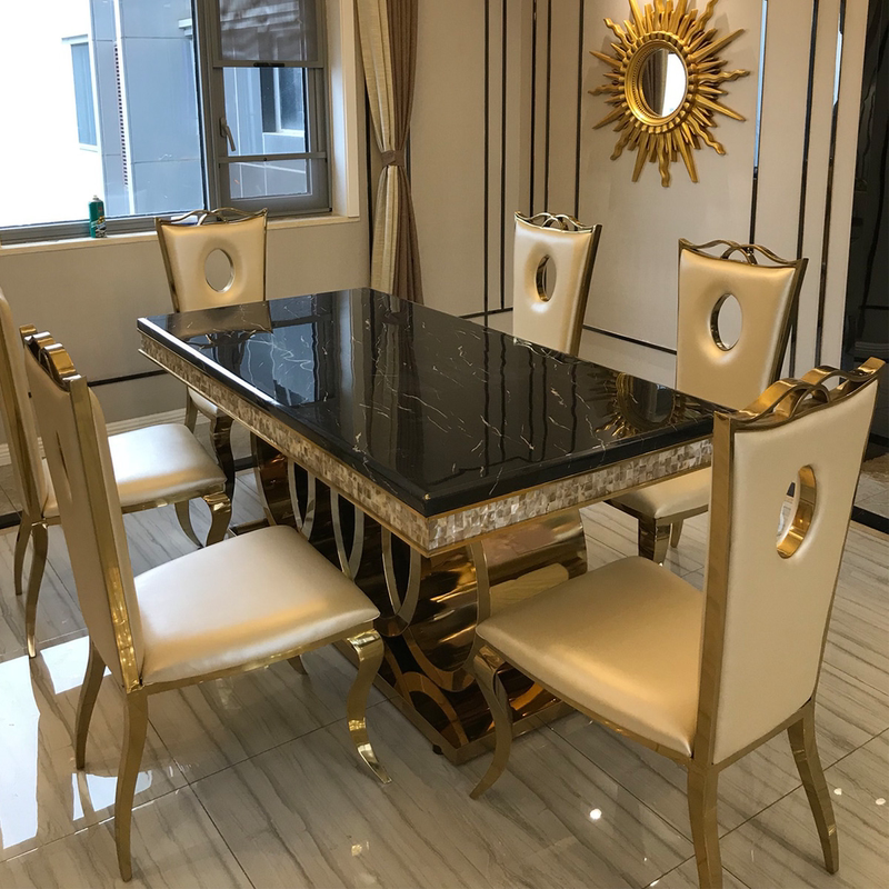 对于餐厅设计来说,舒适安逸才是最主要的。纹理式大理石地砖和餐桌桌面的纹理线条相互映衬,舒适大气。餐桌采用黑色光面加上底部镂空设计,更有气质品味。餐椅采用金属边框和皮质坐垫设计,舒适好清理。整体设计以大...展开