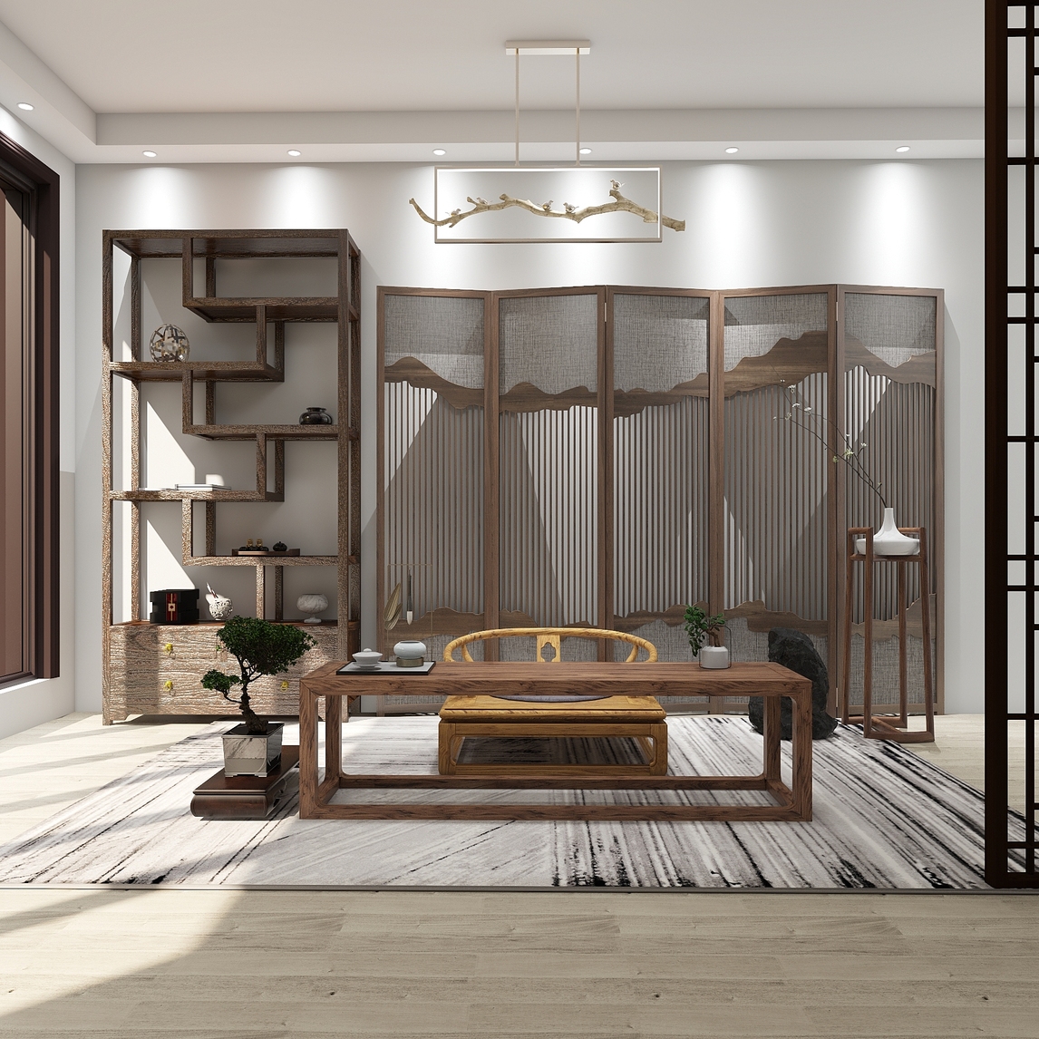 淡雅沉稳的空间色彩在第一眼时就让人感受到其中的典雅氛围,胡桃木的方桌在一旁的松树点缀下,更是凸显出新中式独有的幽雅气质与古典气息,而背后的木质屏风,不仅避免了白墙的单调,更是极大的提升了整个空间的品格...展开