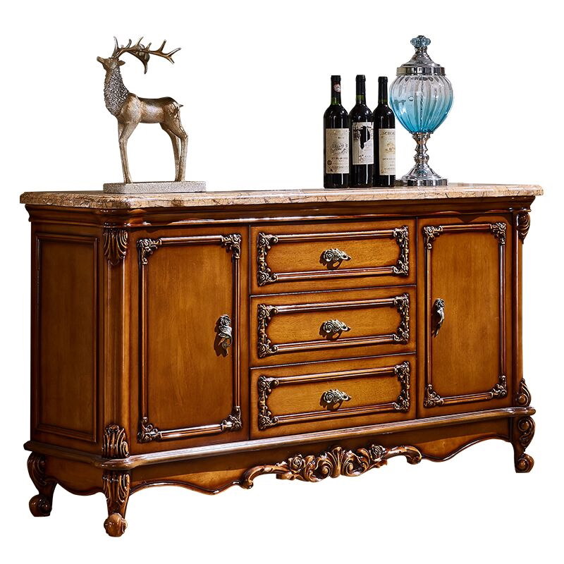 在很多影视剧或者豪门贵族的家里面,都能看到这种奢华的欧式餐厅,沉稳大气的色调,特别是这个圆形餐桌,天然大理石台面,纹理非常美。搭配的实木真皮餐椅,还有餐边柜,用餐的时候能够营造十足的仪式感。