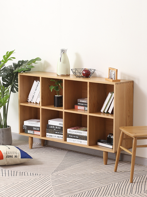 一张落地的多格书架,高度合适,平时只需要搬上一把椅子坐在这里就可以舒舒服服的来阅读书本了,安静休闲。