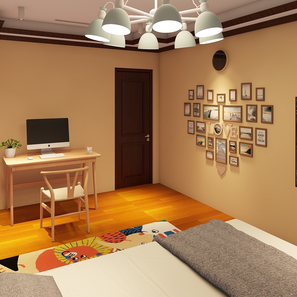 现代卧室除了奢华,还有简约,特别是孩子的卧室,简单更利于孩子个性的成长;一套北欧吊灯加四边筒灯,足够照明,搭配一套布艺床和乳胶床垫;地板采用实木零醛材质,墙面采用立邦竹炭系列乳胶漆,无甲醛,更放心;一...展开