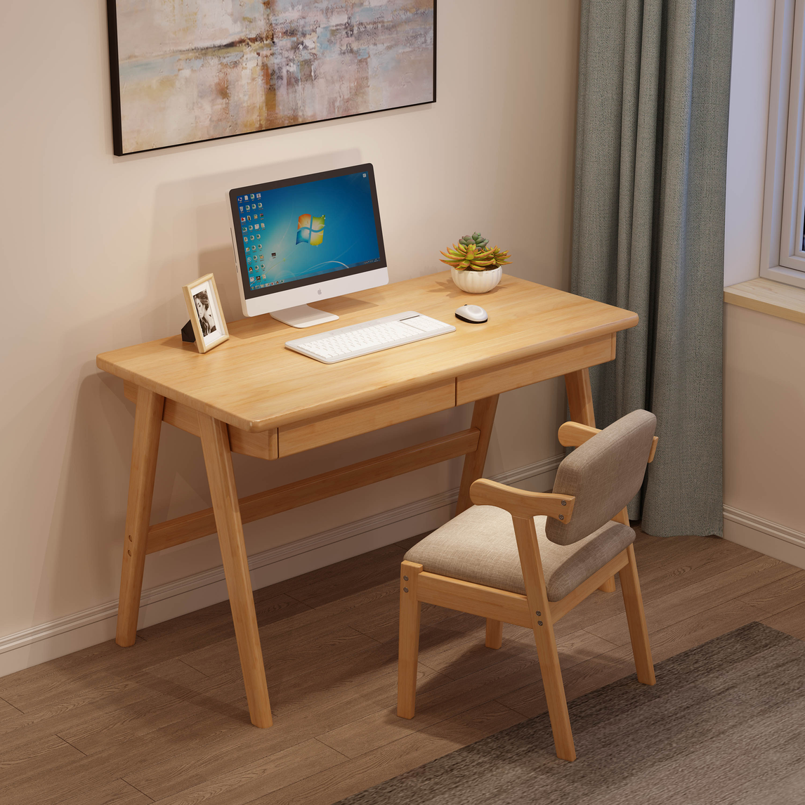 北欧简约实木书房一角