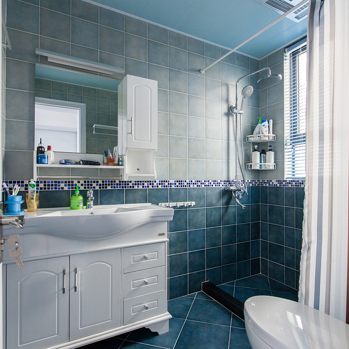 忙碌的生活节奏下,下班回家后只想静静地洗个热水澡。地中海风格的卫生间,整体为蓝色系,给人一种清爽的感觉,让你洗澡的时候如同在海滩边一般,轻松赶走烦闷情绪。