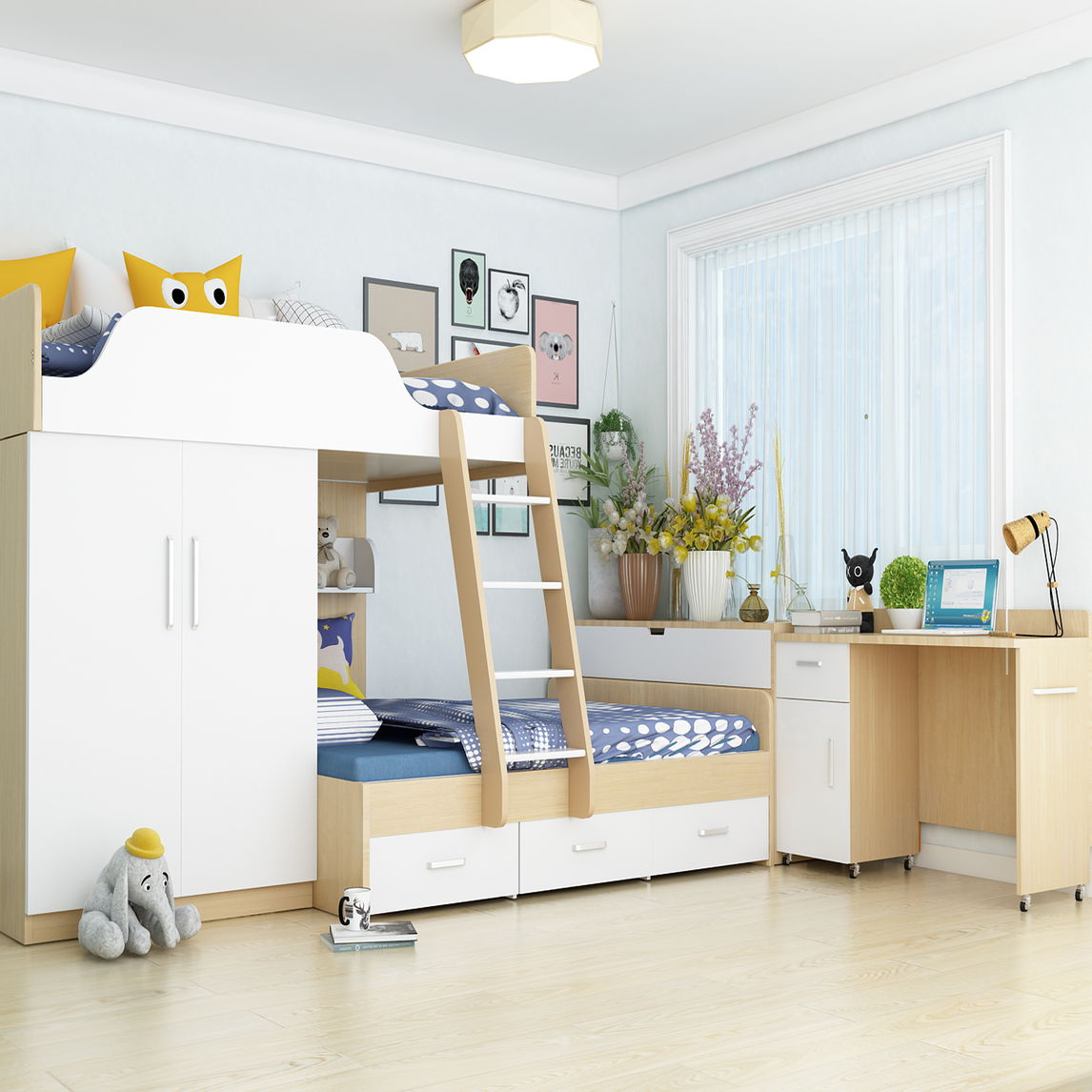 随着二胎政策的开放,作为两个宝贝设计的高低床成为大家选择,能够将儿童床和衣柜储物柜结合在一起,大大的节省了家具占据的空间,让更多的空间给两个孩子玩耍,打造专属小天地