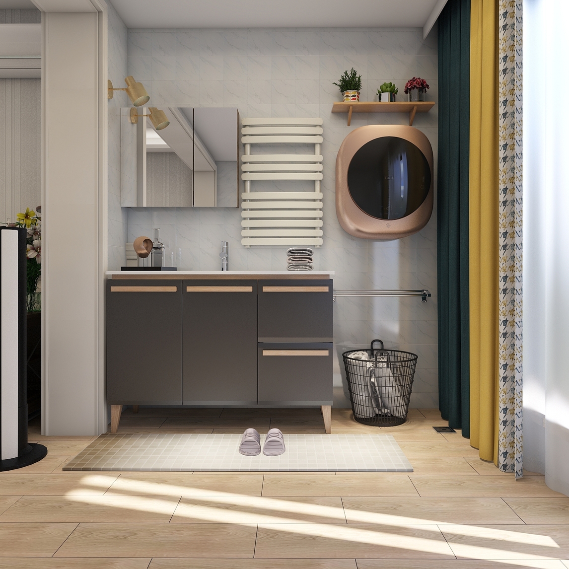 整洁,是最矜持的美感,宽大的镜柜收容下你的一切杂物和烦恼,镜柜不但只是一面镜子,他打开还是一个柜子,里面整齐罗列各种情节用品。壁挂的洗衣机更方便你每次清洁工作,电热毛巾架让毛巾每一次和肌肤的接触都是干...展开