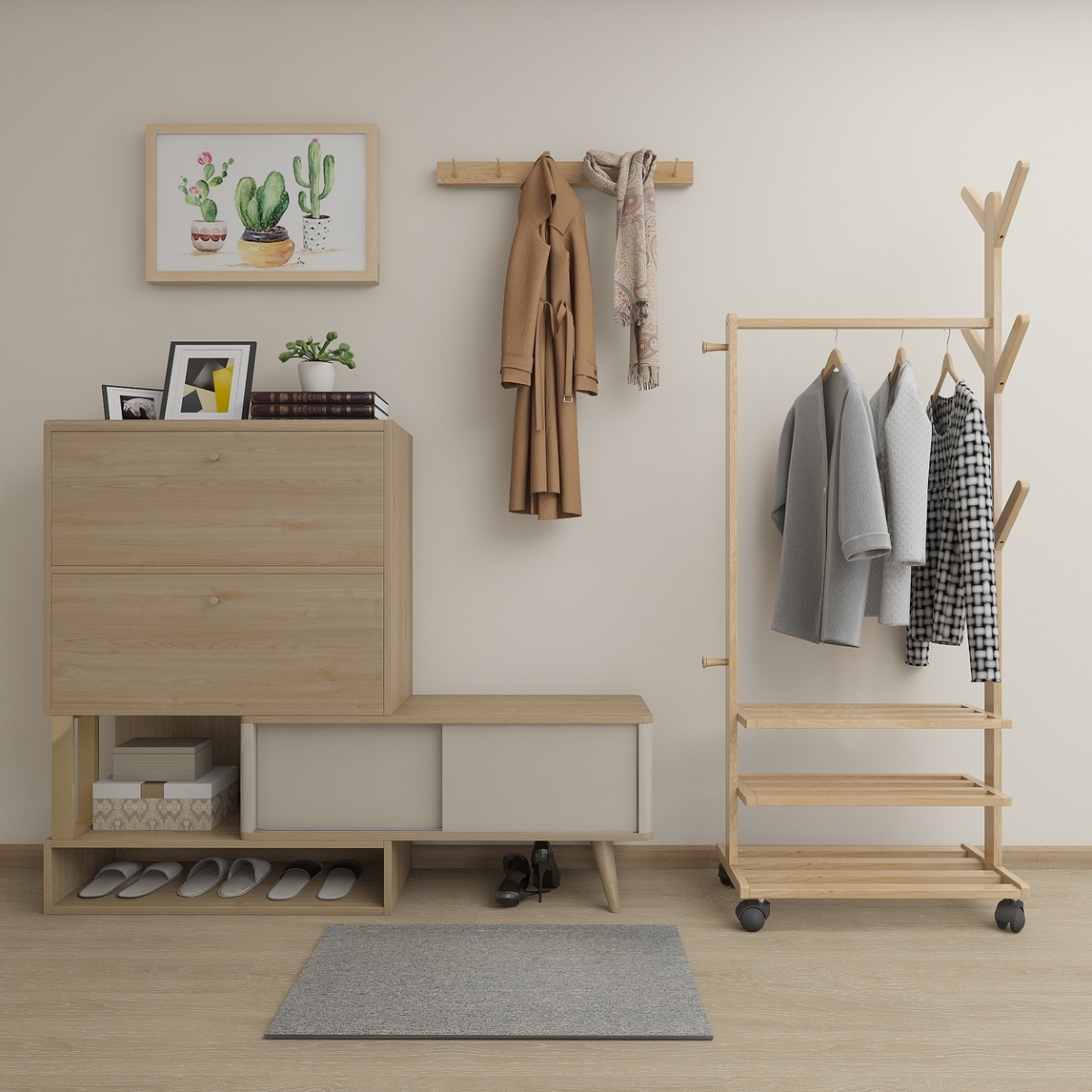 玄关虽说空间不大,但在居室中也是不可或缺的一部分,设计师在进门的玄关处加入了木质结构的储物柜与衣帽架点缀,与同样色系的木质地板相得益彰,尽显温和素雅质感,而搭配上精致摆件与装饰画的陪衬,在有效避免乏味...展开